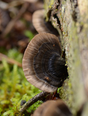 Anders als die Lamellenpilze sind die Porlingsfruchtkörper (Trichaptum, Fomitopsis, Gloeophyllum) mehrjährig.